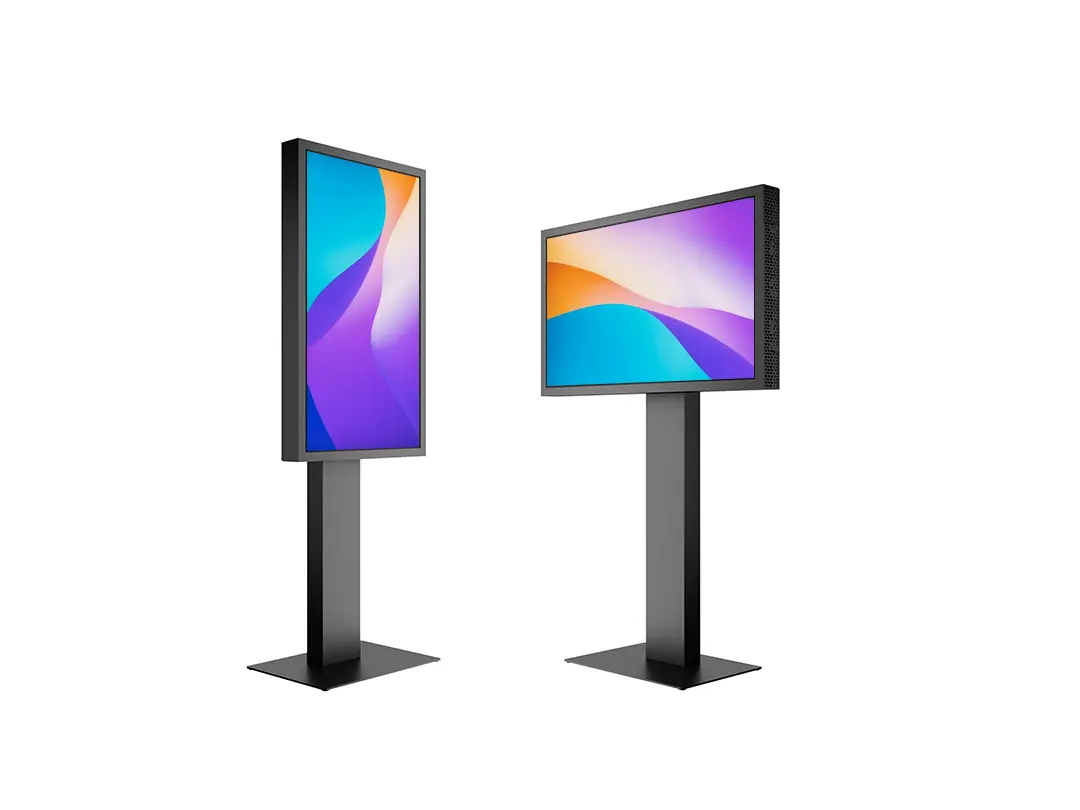 Dieser Standkiosk unterstützt 55-Zoll-Bildschirme mit hoher Helligkeit im Hoch- oder Querformat. Er wurde für digitale Beschilderung im Innenbereich, Warteschlangenmanagement oder interaktive Informationspunkte entwickelt und bietet ein sicheres und manipulationssicheres Gehäuse, ideal für Einkaufszentren, Museen, Flughäfen und Verkehrsknotenpunkte. Der rückseitige Zugang mit Schraubverschluss ermöglicht eine einfache Wartung und schützt die Komponenten.